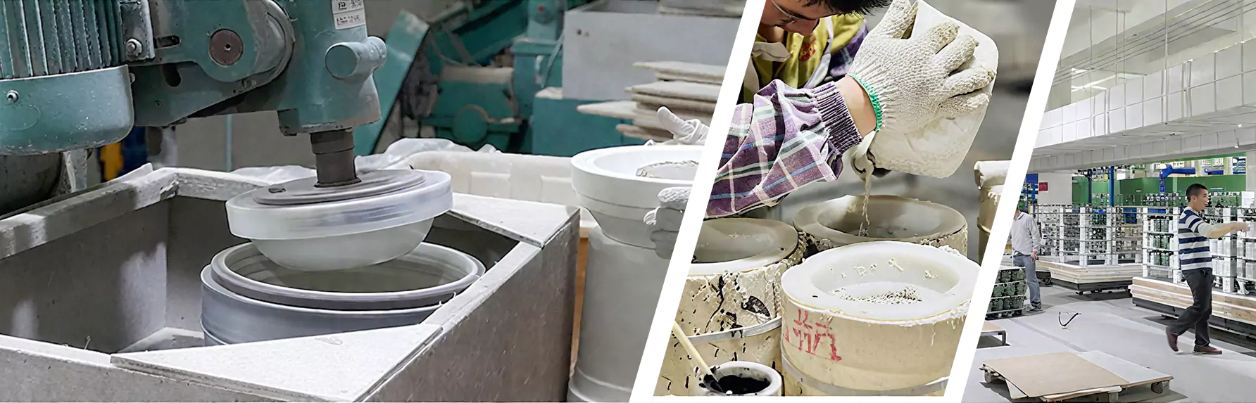 Біздің фуджандағы негізгі зауытымыз жоғары сапалы керамикалық ыдысқа, оның ішінде кружкалар (кофе және шай шыныаяқтары) және шамдармен айналысады. Fujian - керамикалық қолөнерге арналған хаб. Біздің зауытымыз заманауи өндірістік желілер мен индустриалды және эстетикалық жағымды өнімдерді қалыптастыру, жылтырату және өрт сөндірудегі дәлдікті қамтамасыз ете отырып, заманауи өндірістік желілер мен ИСО-сертификатталған процестермен танысады.