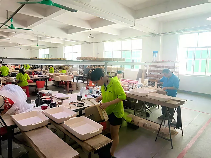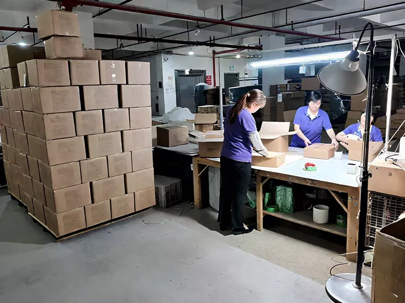 Қаптаманы және жеткізілімді жеңілдету үшін біз Донггуандағы штаб-пәтеріміздің жанында өзіміздің орауыштық орталығын құрдық. Бұл орталық шыны шамын иелері мен диффузорлар сияқты нәзік заттарға арналған орауыштарға мамандандырылған. Біз қораптар мен төсемдер жасай аламыз, және біз әйнек диффузорлары мен сәндік керамика сияқты заттарды қорғау үшін, олардың қауіпсіздігін қамтамасыз ету үшін экологиялық таза материалдарды қолданамыз.