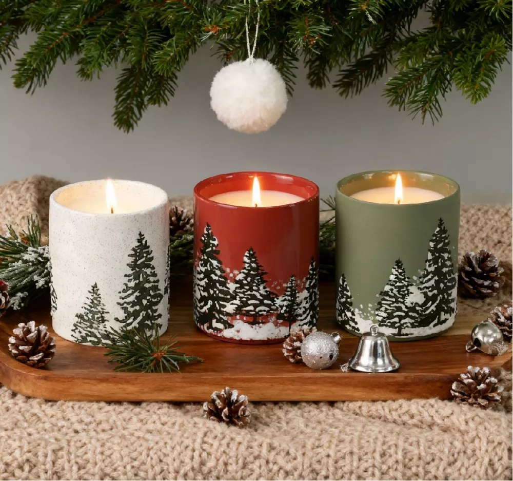Әр қолмен боялған Шамдардағы Рождество қарағайлары - қарағай ағашының дизайнымен, қараңғы жасыл бұтақтар мен қарда бөлшектердің ерекше қабаттарымен және табиғи, динамикалық щеткалардан тұрады, әр бөлікті бірегей етеді.
