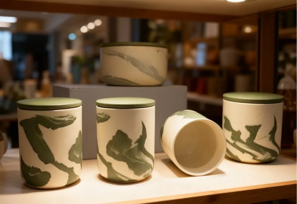 • Табиғи жасыл қабықтан жасалған керамикалық шамТабиғи жасыл қабықтан жасалған керамикалық шам