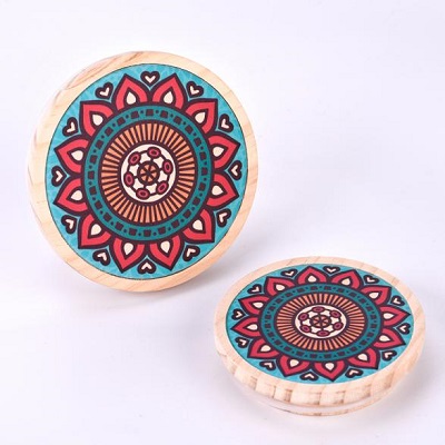 BYF-тің жеке үлгісін басып шығару ағаш қақпақтары Мандала-рухтандырылған үлгідегі ашық түсті табиғи ағаштан жасалған. Әр қақпақтың өзіндік ерекше тұлғасы бар. Симметриялық геометриялық пішіндер гүлді гүлді мотивтер, ал жанашыр түстер-қызғылт сары, қызғылт, көк және жасыл, көркем және ерекше эстетикалық. Қақпақтар жеңіл және практикалық, герметикалық және сәндік функцияларды ұсынады. Олар үйдегі хош иістерге, сыйлық әшекейлеріне және басқа қосымшаларға және басқа қосымшаларға, табиғи құрылымды дараланған эстетикамен жақсы араластырады.